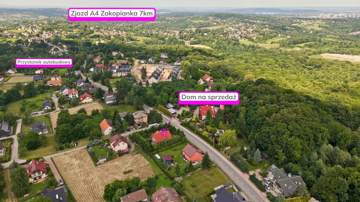 Dom zlokalizowany jest w pierwszej linii zabudowy - bezpośrednio przy asfaltowej drodze z wygodnym chodnikiem dla pieszych.