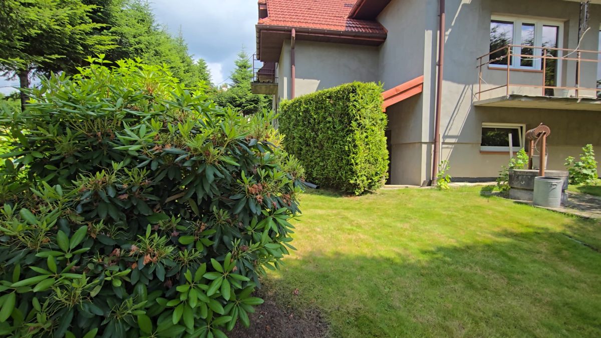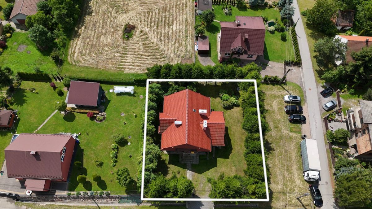 Na działce o powierzchni 800 m² znajduje się wolnostojący dom jednorodzinny z garażem w bryle budynku. Działka jest ogrodzona, równa, zagospodarowana trawnikiem i drzewami iglastymi. Kształtem przypomina trapez (boki: 30-31,5 m, podstawy: 25 m i 27 m).