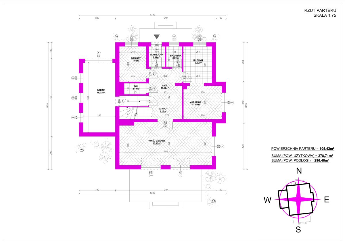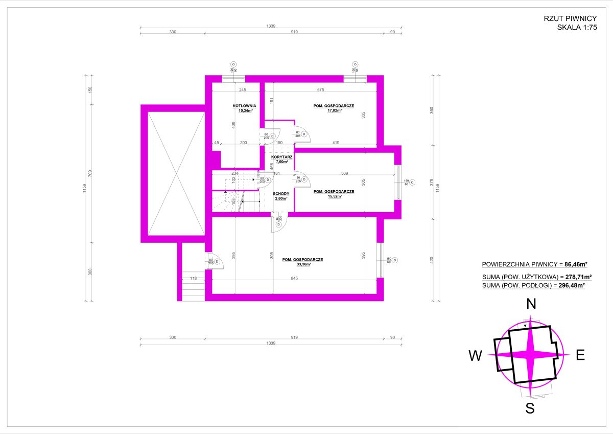 • 3 pomieszczenia gospodarcze: 33,38 m², 15,52 m², 17,02 m²