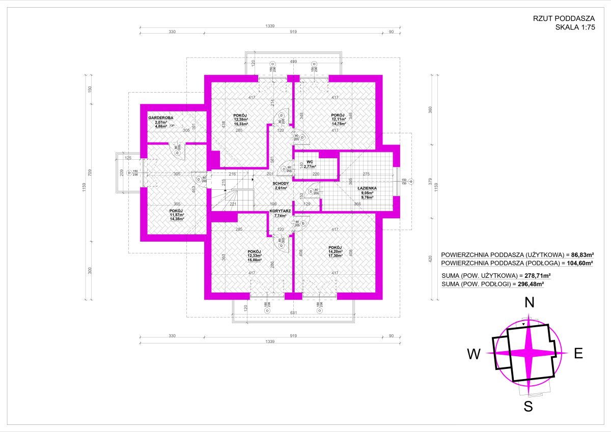 • pokój nad garażem: 11,57 m² + garderoba 2,07 m²