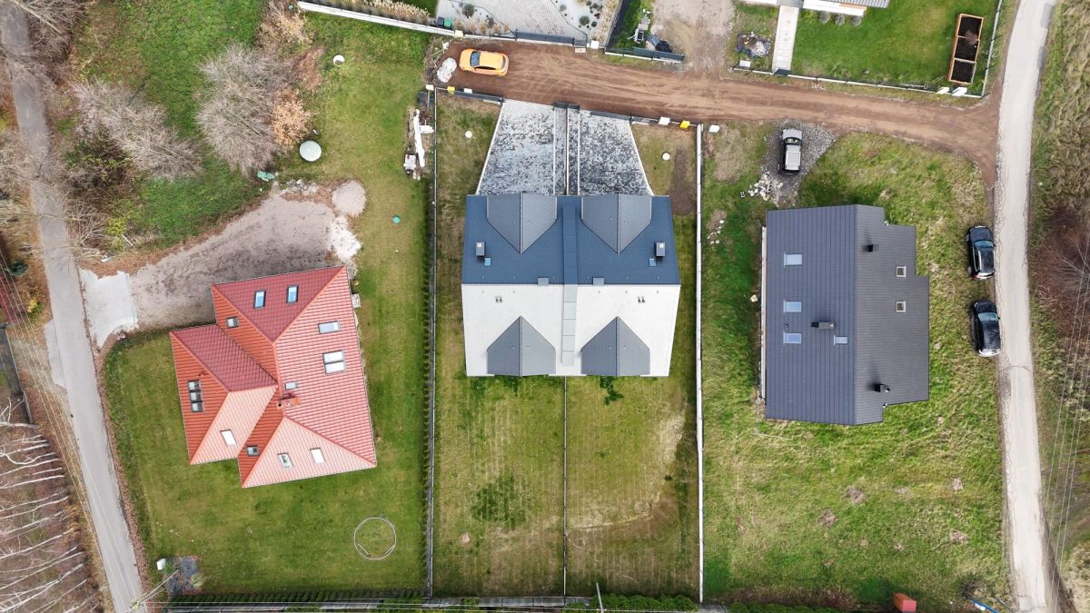 • Działki: ma powierzchnię 502 m² (5,2 arów), wyposażone w studnie chłonne i system drenażowy do odprowadzania wód opadowych.