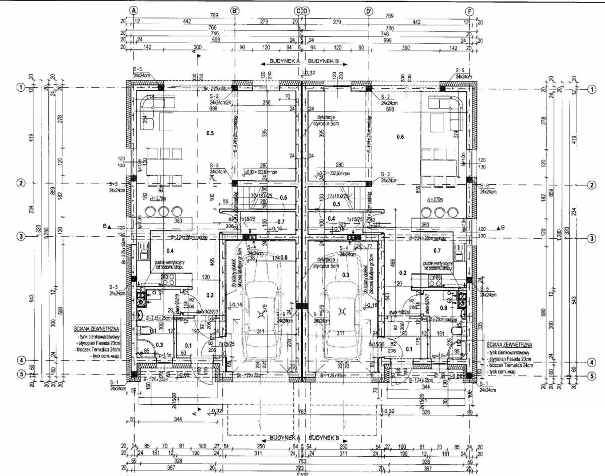 • Elewacja: styropian 20 cm, tynki gipsowe.