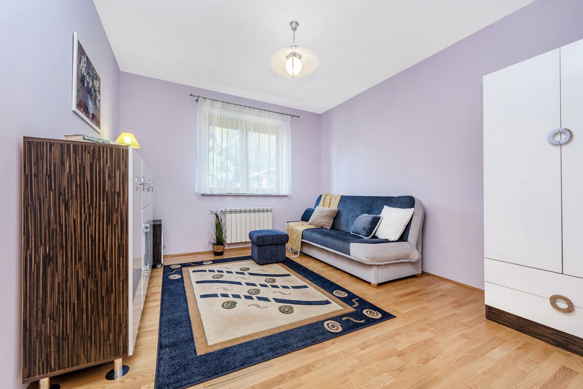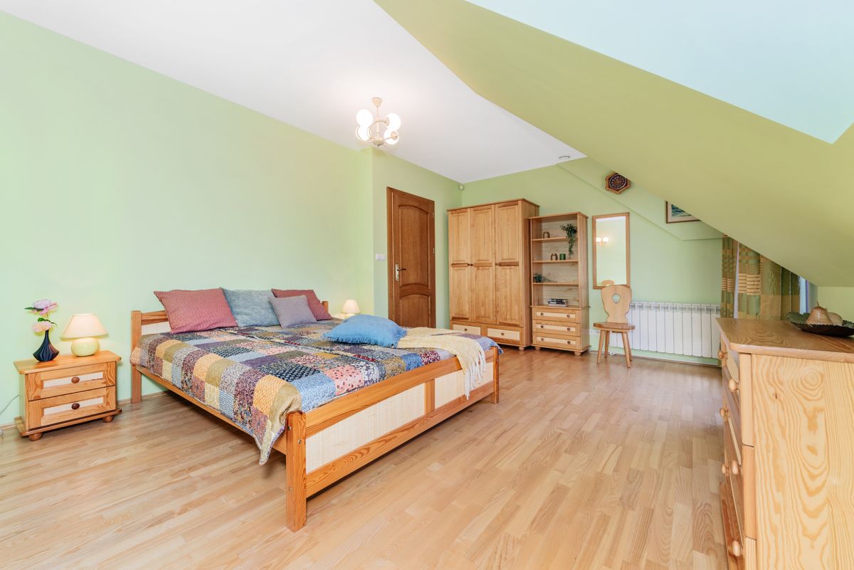 Wspaniale zagospodarowana i idealnie utrzymana działka o powierzchni 17 arów (ani za duża, ani za mała). Wygodny brukowany podjazd do garażu i wiaty (trzy stanowiska), angielski trawnik, liczne krzewy i rabaty (w tym z pięknymi i pachnącymi różami). Położona dokładnie 60 metrów od granicy lasu, w otoczeniu bardzo luźnej zabudowy (trzech sąsiadów), ze świetnym dojazdem (asfalt, ostatnie 60 metrów betonowe płyty). I przede wszystkim ten widok - panoramiczny (przy dobrej widoczności z balkonu będziecie oglądać Tatry!), pełen otaczających posiadłość wzgórz, łąk i lasów. I nie trzeba wcale jechać w Bieszczady. Nieruchomość jest położona w Kobylcu i oddalona tylko o 8 km od Gdowa, 18 od Bochni, 22 od Wieliczki i 25 od południowo - wschodniej granicy Krakowa. Dzięki temu bezproblemowo wyjedziecie w zasadzie w każdym kierunku - np. do węzła autostradowego w Targowisku jest zaledwie 15 km. Niezbędną infrastrukturę handlowo - usługowa znajdziecie właśnie w Gdowie lub jeszcze bliżej (niecałe 4 km) - w Łapanowie. Dla aktywnych - ośrodek Kuter Port z piaszczystą plażą, stawami rybnymi, świetną restauracją oraz krytym basem, saunami, grotą solną, siłownią, kortami tenisowymi (w zimie z lodowiskiem) - to z kolei 3,2 km. I oczywiście możliwość spacerów pieszych i rowerowych zaczynająca się już przy furtce.