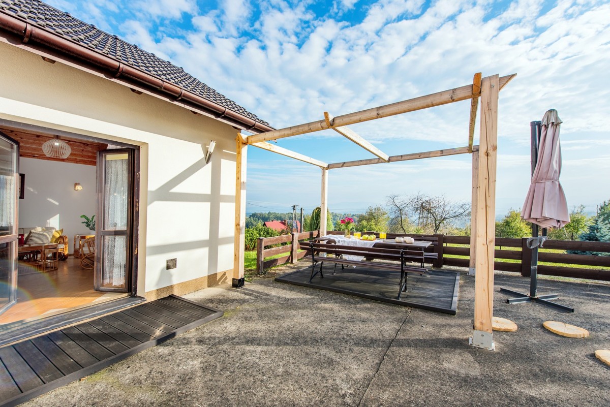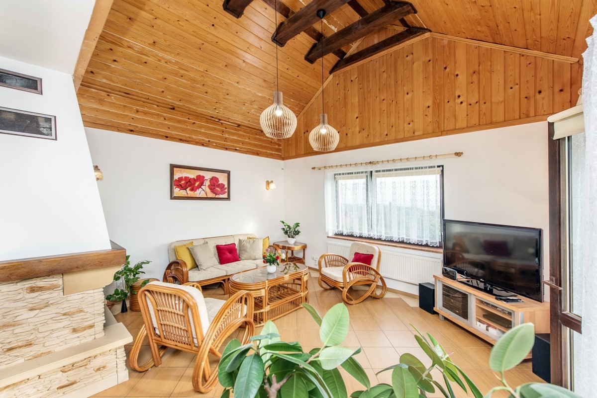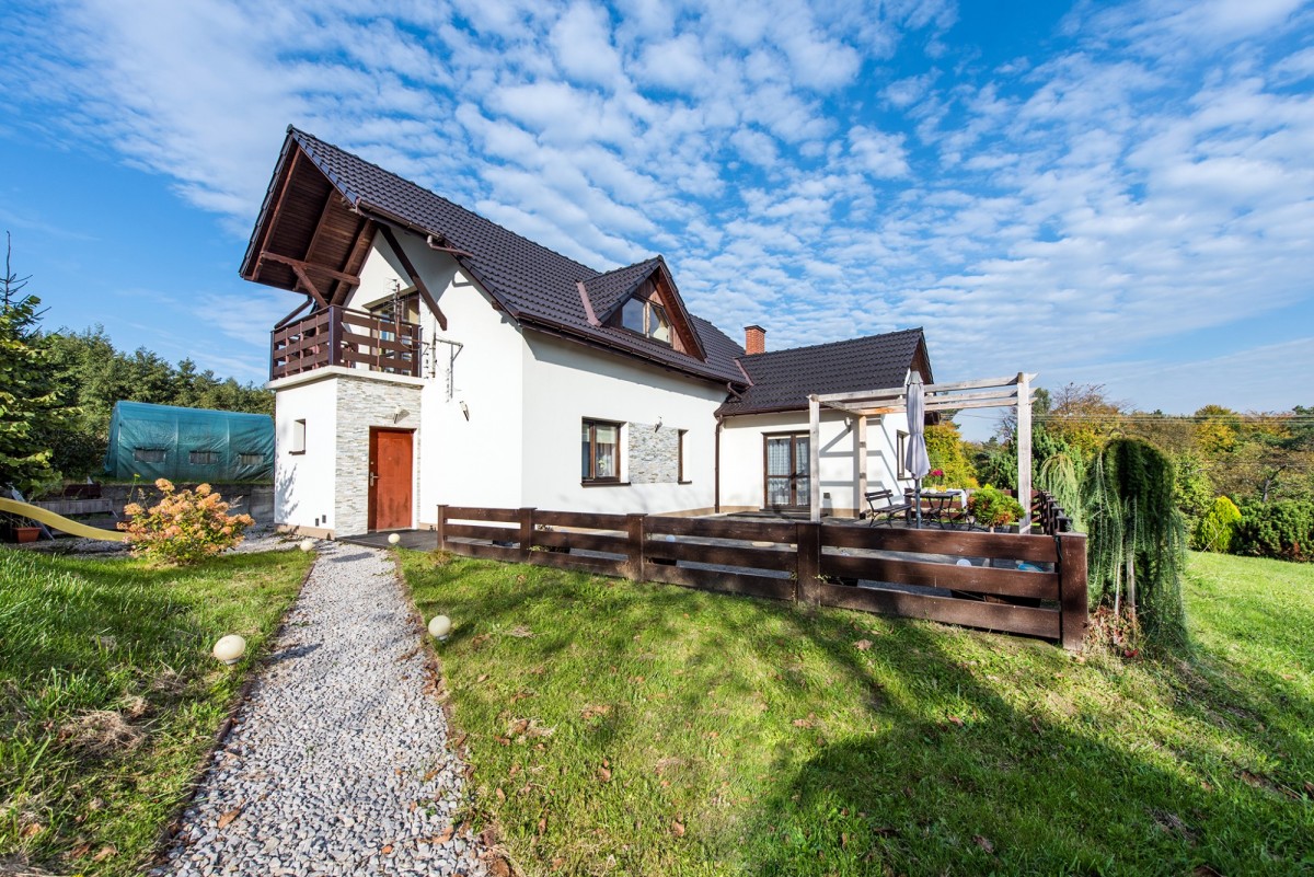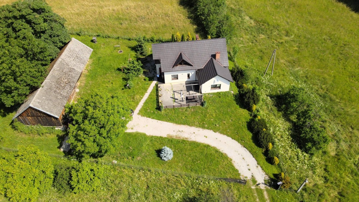Budowa domu została zakończona w 2012 roku - można powiedzieć, że jest w zasadzie prawie nowy. Jakkolwiek wspomniałem, że największym atutem jest położenie działki, fantastyczne widoki i wszechogarniająca cisza, to nie brakuje również zalet bardziej oczywistych i praktycznych. Dom jest obszerny - nie tylko jako całość, ale również metraż każdego pomieszczenia daje poczucie swobody. Na parterze dysponujemy wszystkimi dodatkowymi powierzchniami, o co zazwyczaj bardzo trudno. Oprócz niezwykle atrakcyjnego salonu otwartego na jadalnie i kuchnię, sypialni (lub gabinetu), łazienki, odrębnej toalety mamy jeszcze garderobę i spiżarnię! Piętro to trzy sypialnie (w tym z dwie z balkonem), łazienka i spory hol. Powierzchnie poszczególnych pomieszczeń prezentujemy na załączonych do oferty rzutach. Rozplanowanie pomieszczeń i ich gabaryty są funkcjonalne dla nawet większej rodziny. Również wyposażenie domu i zagospodarowanie działki nie budzą najmniejszych wątpliwości - ogrzewanie gazowe, obszerna stodoła idealna na garaże lub miejsce pracy dla majsterkowicza, wędzarnia, grill, widokowy taras, w pełni urządzone kuchnia i łazienka, itp. itd. Z kolei działka daje poczucie prywatności, bliskości natury, a jej powierzchnia (81 arów!) jest absolutnie unikatowa i stwarza olbrzymie możliwości różnorakiego wykorzystania (południowy stok).