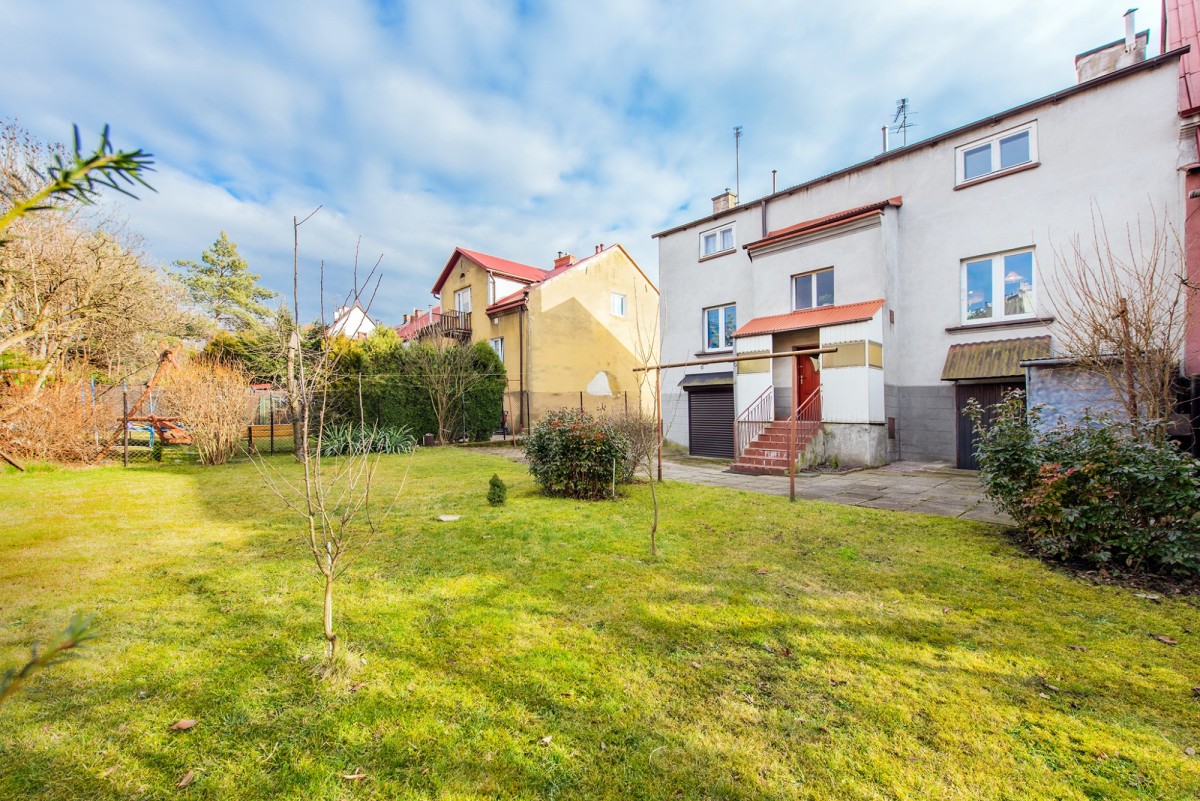 Zacznijmy od działki, co w tej lokalizacji może się wydawać wręcz irracjonalne. A jednak! Dysponujemy prostokątną działką o powierzchni prawie 4 arów, co w praktyce daje spory, zielony ogródek plus dwa, a nawet trzy miejsca parkingowe. W ogródku wystarczy miejsca na wypoczynek lub imprezę dla bardzo licznego grona rodziny lub przyjaciół. W tym miejscu miasta to po prostu rozpusta. Dom z lat sześćdziesiątych tworzą dwa mieszkania na dwóch kondygnacjach o łącznej powierzchni 150 mkw. Na wysokim parterze istnieje możliwość wydzielenia dwóch lokali. Z kolei strych na części piętra daje możliwość poszerzenia powierzchni mieszkalnej górnego lokalu. Trzecia kondygnacja to częściowo garaż i były lokal usługowy, a częściowo powierzchnia gospodarczo - magazynowa. Oczywiście nie ma przeszkód, aby wszystkie kondygnacje tworzyły jeden lokal mieszkalny.