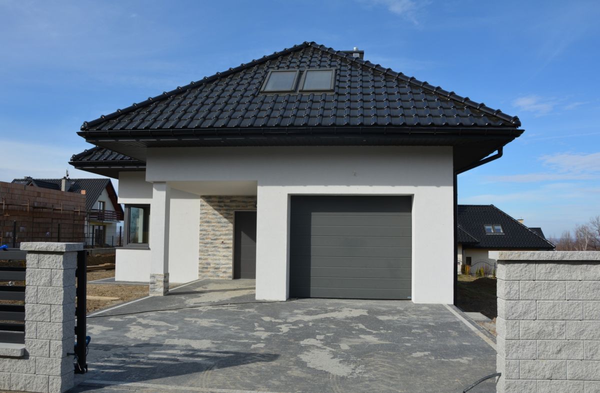 Dom został usytuowany na stosunkowo dużej, ogrodzonej działce, która daje poczucie swobody oraz bezpieczeństwa i zapewnia miejsce dla całej rodziny. Jednocześnie pozwala na urządzenie ogrodu pod indywidualne potrzeby, a równocześnie nie jest wymagająca i czasochłonna w utrzymaniu.