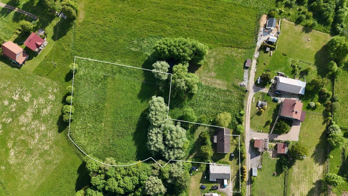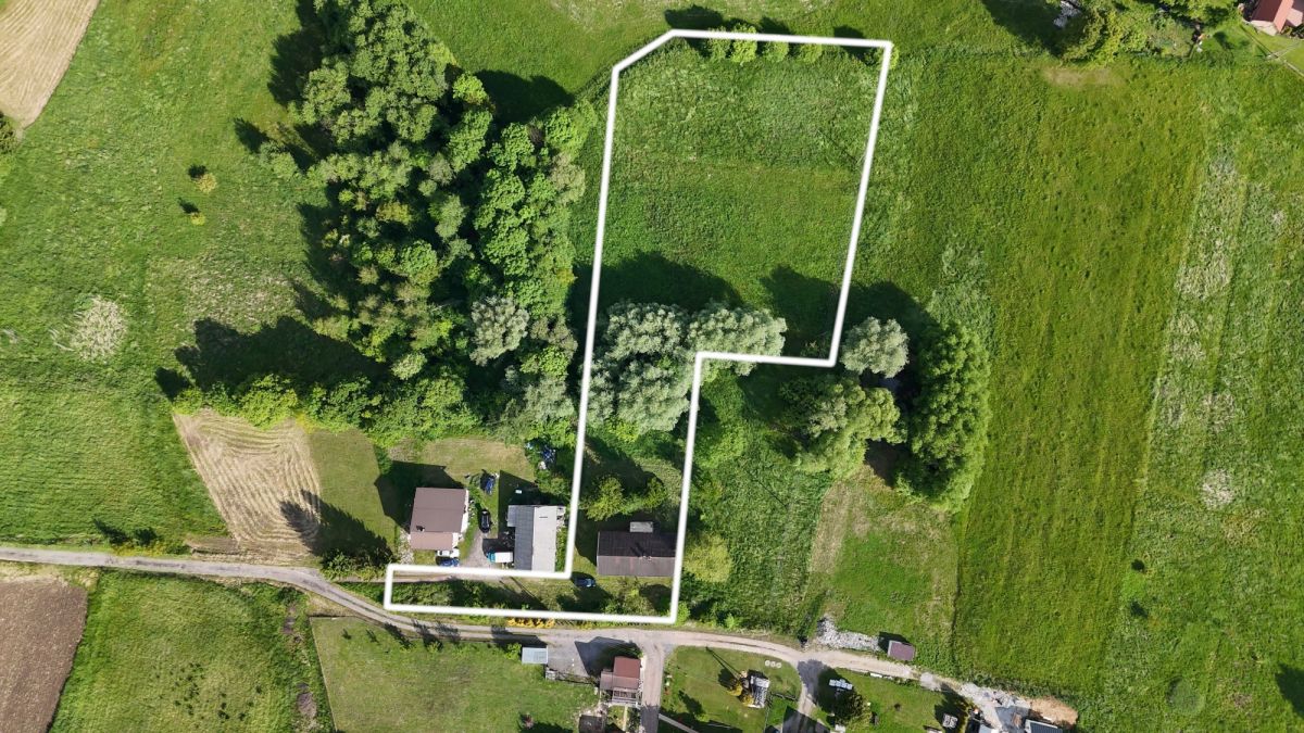 Na działce stoi stary dom mieszkalny z podpiwniczeniem (ok. 135 m² powierzchni zabudowy) - do rozbiórki lub dla odważnych marzycieli z pomysłem na renowację. Teren otoczony zielenią, częściowo nachylony na południe - idealny na ogród, siedlisko lub nowoczesny dom z w sielskim otoczeniu.