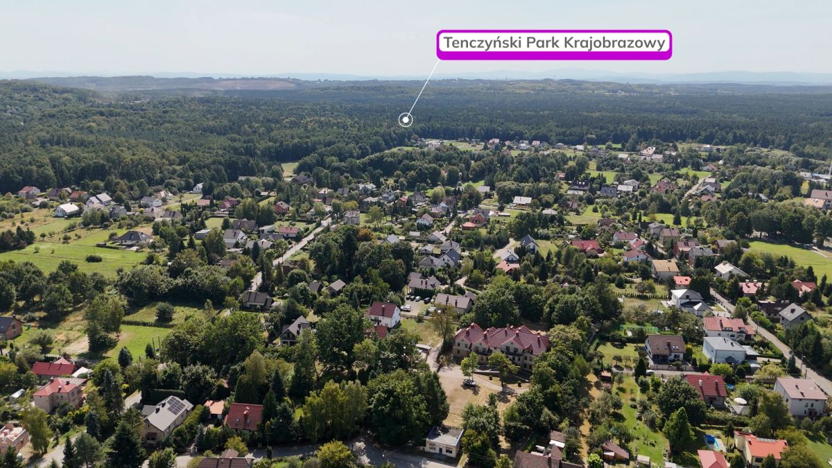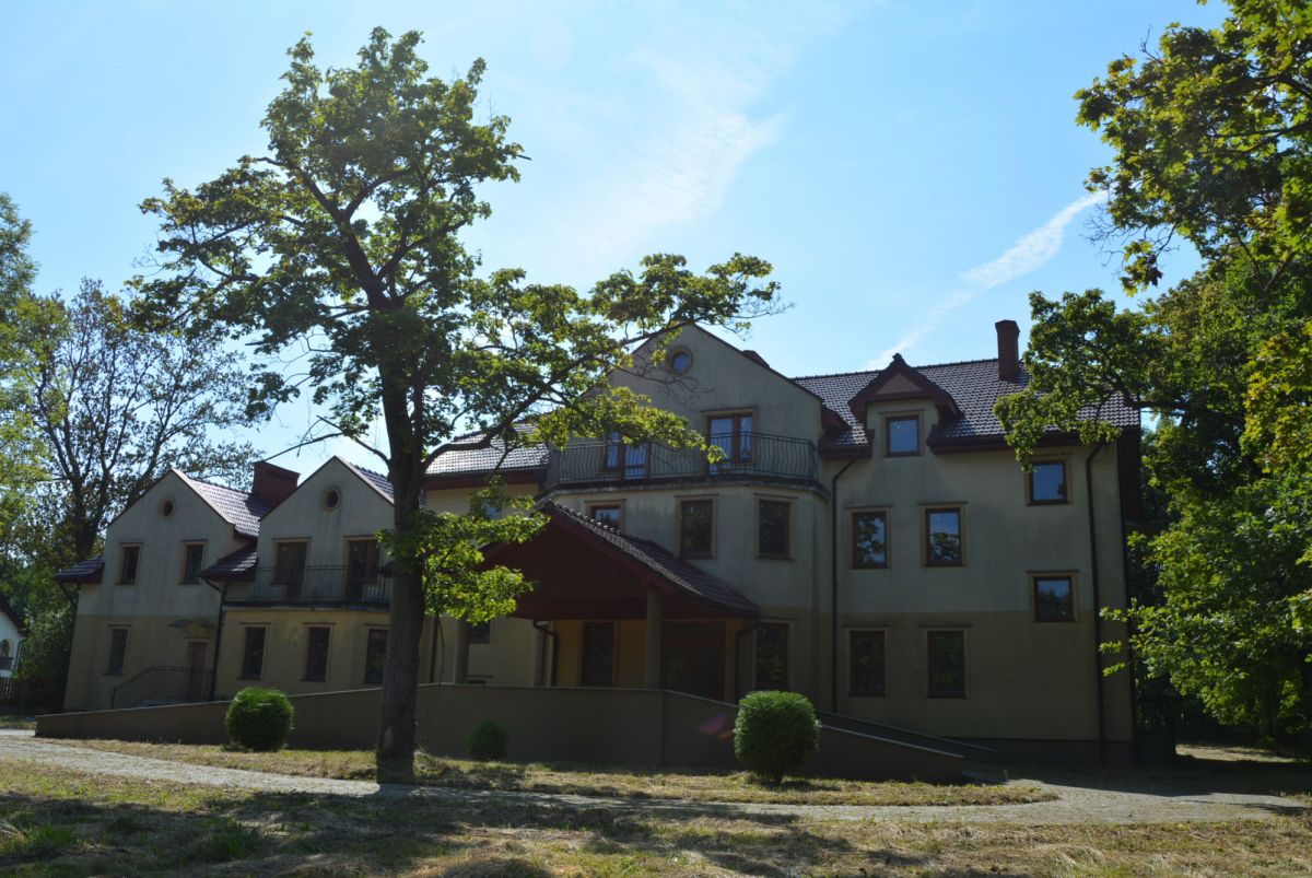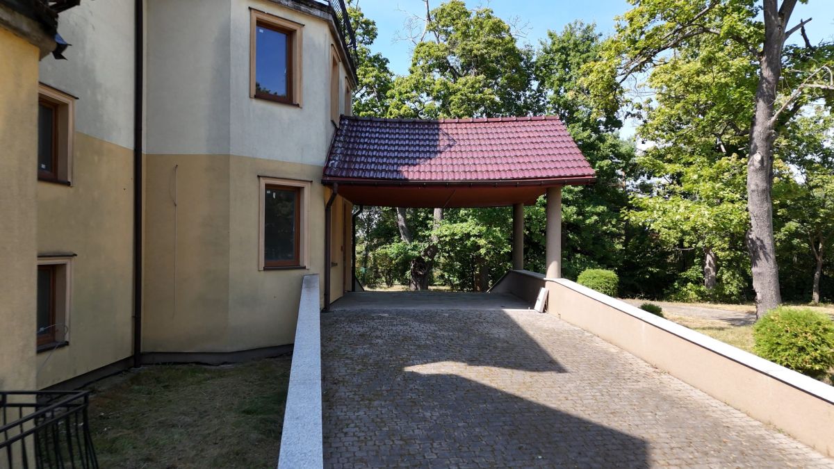 Budynek powstał w klimatycznym miejscu, gdzie kiedyś stała leśniczówka Potockich zarządzająca przyległymi włościami, na których teraz jest Tenczyński Park Krajobrazowy. Sama działka, a w zasadzie park, ma 56 arów powierzchni, natomiast dom prawie 1400 metrów kwadratowych z 22 pokojami z łazienkami, a także dodatkowymi gabinetami i pomieszczeniami socjalnymi. Nieruchomość jest w stanie deweloperskim, więc można dopasować ją do swojego konkretnego pomysłu na biznes.