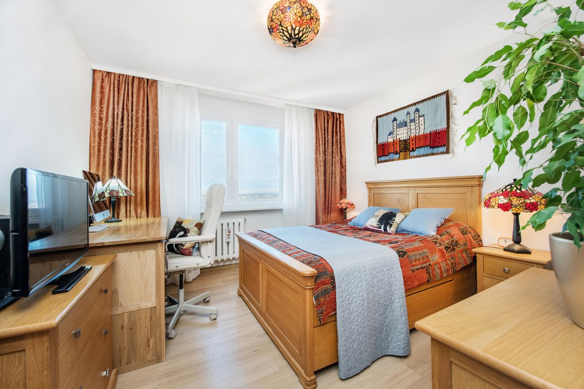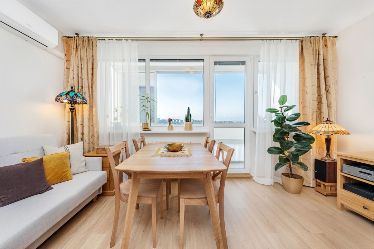 Mieszkanie znajduje się na 9 piętrze w 10-piętrowym budynku z 1981 roku i oferuje piękny, niczym nieprzysłonięty widok.