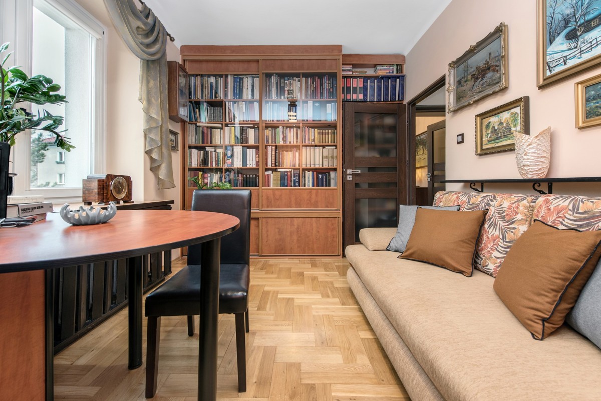 Nasza nieruchomość to klasyczne trzypokojowe mieszkanie z odrębną, jasną kuchnią o powierzchni 64 mkw, na I piętrze w 2 piętrowym budynku wybudowanym w latach pięćdziesiątych XX wieku. Nie muszę chyba dodawać, ze ówczesne standardy to grube ceglane mury (bardzo ciepłe zimą i chłodne latem!), kameralne klatki schodowe (cztery mieszkania na klatkę!), obszerne piwnice, liczne bezpłatne miejsca parkingowe i bardzo dużo zieleni wokół. Całość uzupełnia klasyczny, mały balkonik. Mieszkanie jest w idealnym stanie, w pełni umeblowane, gotowe do zamieszkania. To atrakcyjne mieszkanie można obejrzeć i złożyć ofertę zakupu podczas Dnia Otwartego, w piątek 25 lutego. W celu ustalenia konkretnej godziny Państwa wizyty proszę o kontakt telefoniczny (501 864 039).