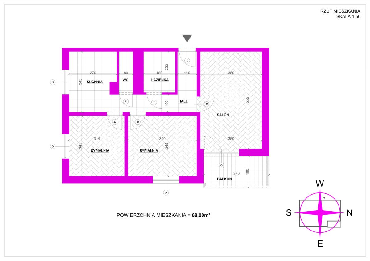Powierzchnia użytkowa: 68 m², na którą składa się obszerny salon, dwie sypialnie, jasna kuchnia, duży hall, łazienka z wanną oraz odrębna toaleta z umywalką - powierzchnia poszczególnych pomieszczeń na załączonym rzucie. Dodatkowo - duża, zabudowana logia.