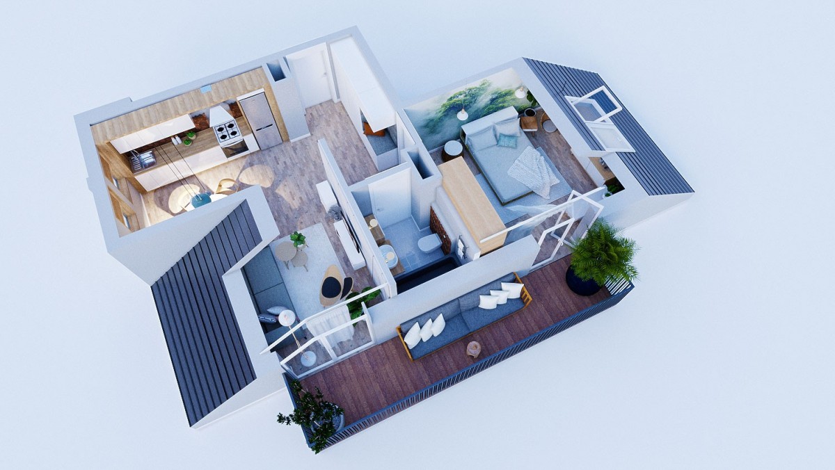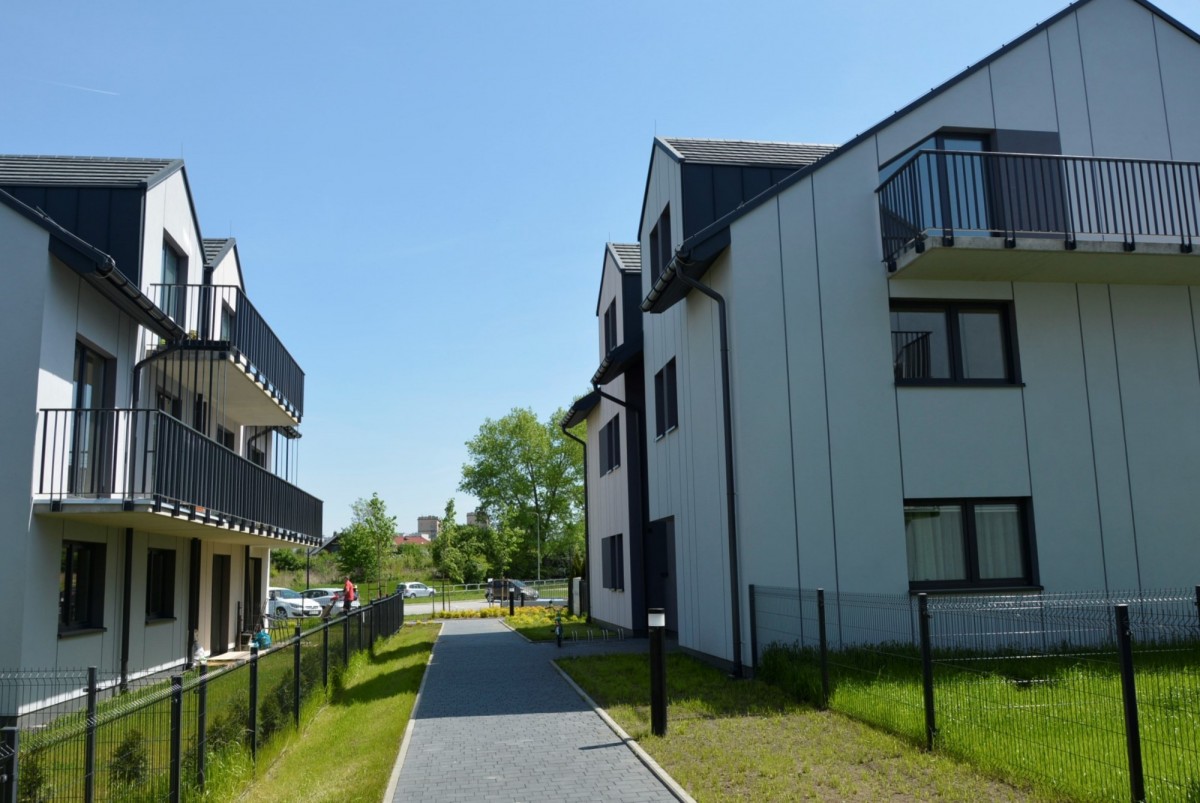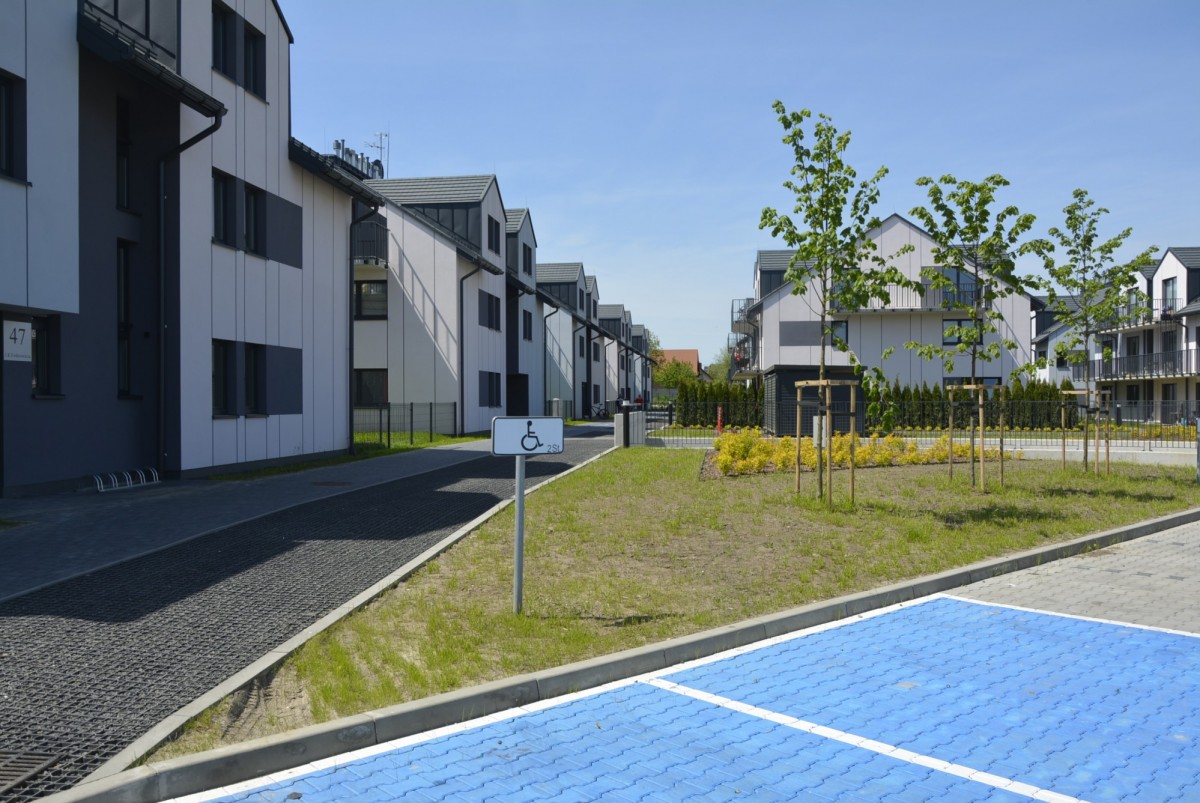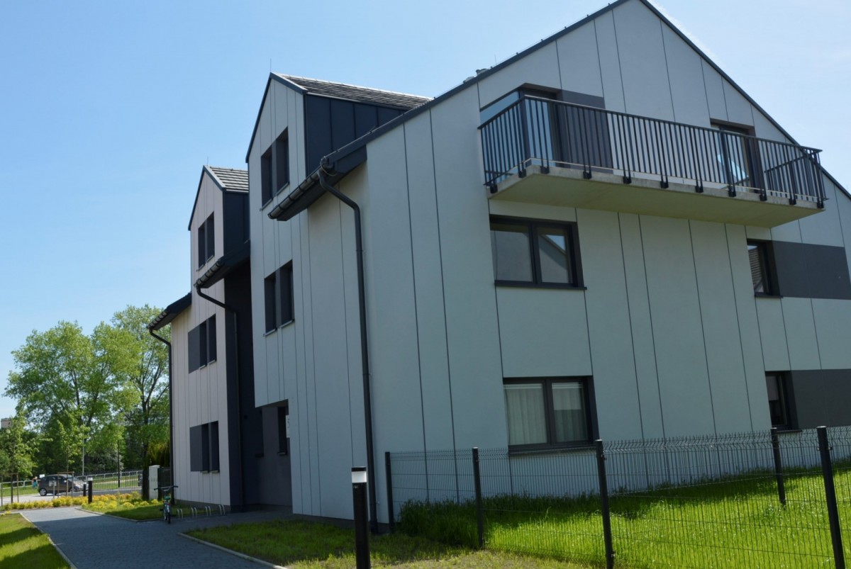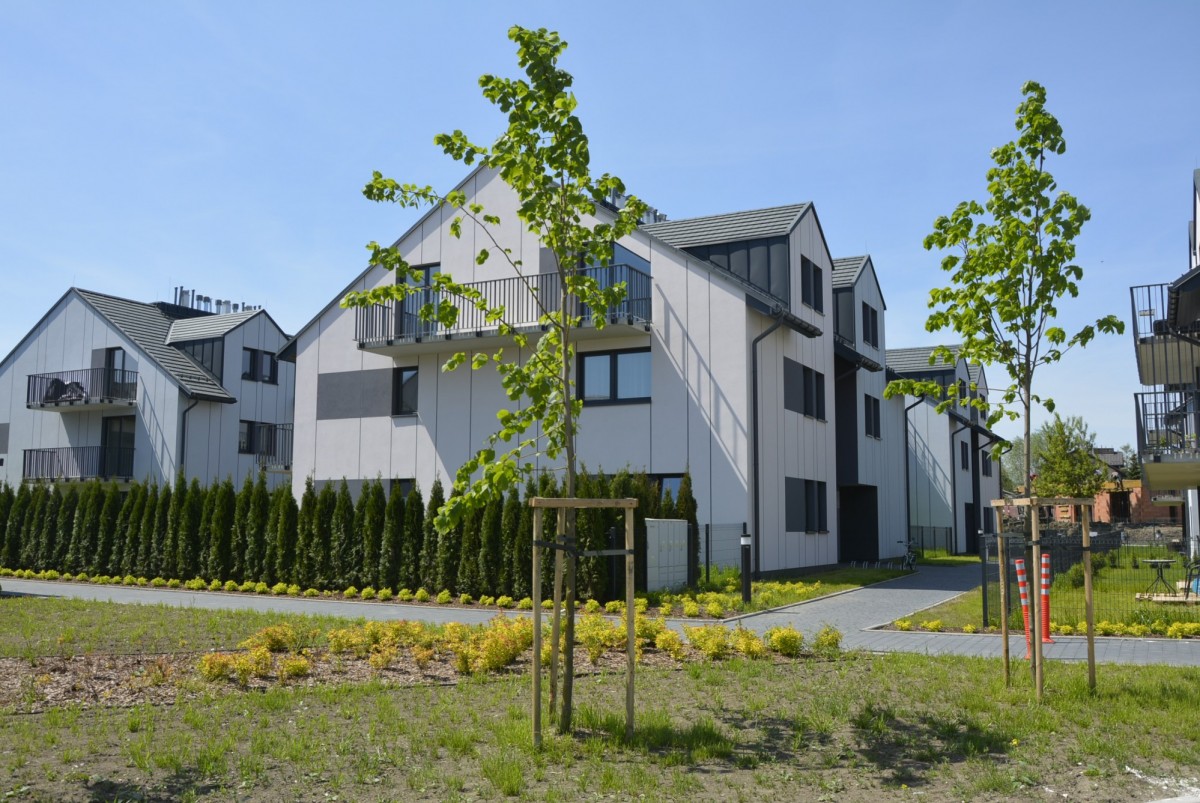 Mieści się na II piętrze jednego z 10 niewielkich budynków wchodzących w skład tego kameralnego osiedla (w każdym z nich jest tylko 8 mieszkań). Oprócz ilości, kameralność zapewnia również ograniczenie wysokości - wszystkie mają tylko dwa piętra. Dlatego otoczenie nie przytłacza i daje poczucie swobody zarówno na zewnątrz, jak i na klatce schodowej. Mieszkanie jest w klasycznym stanie deweloperskim. Składa się z salonu z aneksem kuchennym, sypialni holu, łazienki i obszernego balkonu. Dzięki położeniu na II piętrze i licznym przeszkleniom jest bardzo jasne. Powierzchnia całkowita (po podłodze) to 50 mkw, a mieszkalna (zgodnie z PN ISO) - 41,24 mkw. Ogrzewanie miejskie i brak instalacji gazowej dają poczucie wygody i bezpieczeństwa.