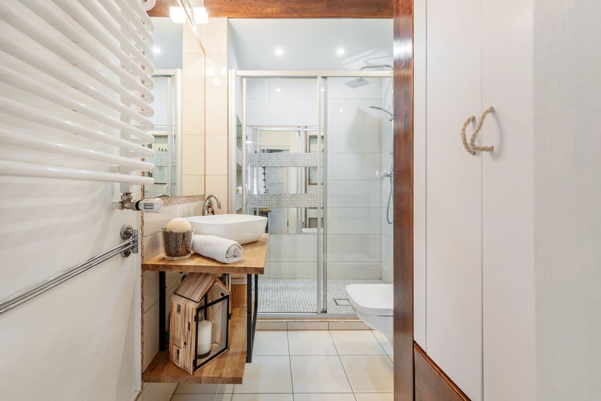 Mieszkanie ogrzewane jest z kotłowni gazowej dla całego budynku (wymiana kotła w 2025 roku). W lokalu nie ma instalacji gazowej.