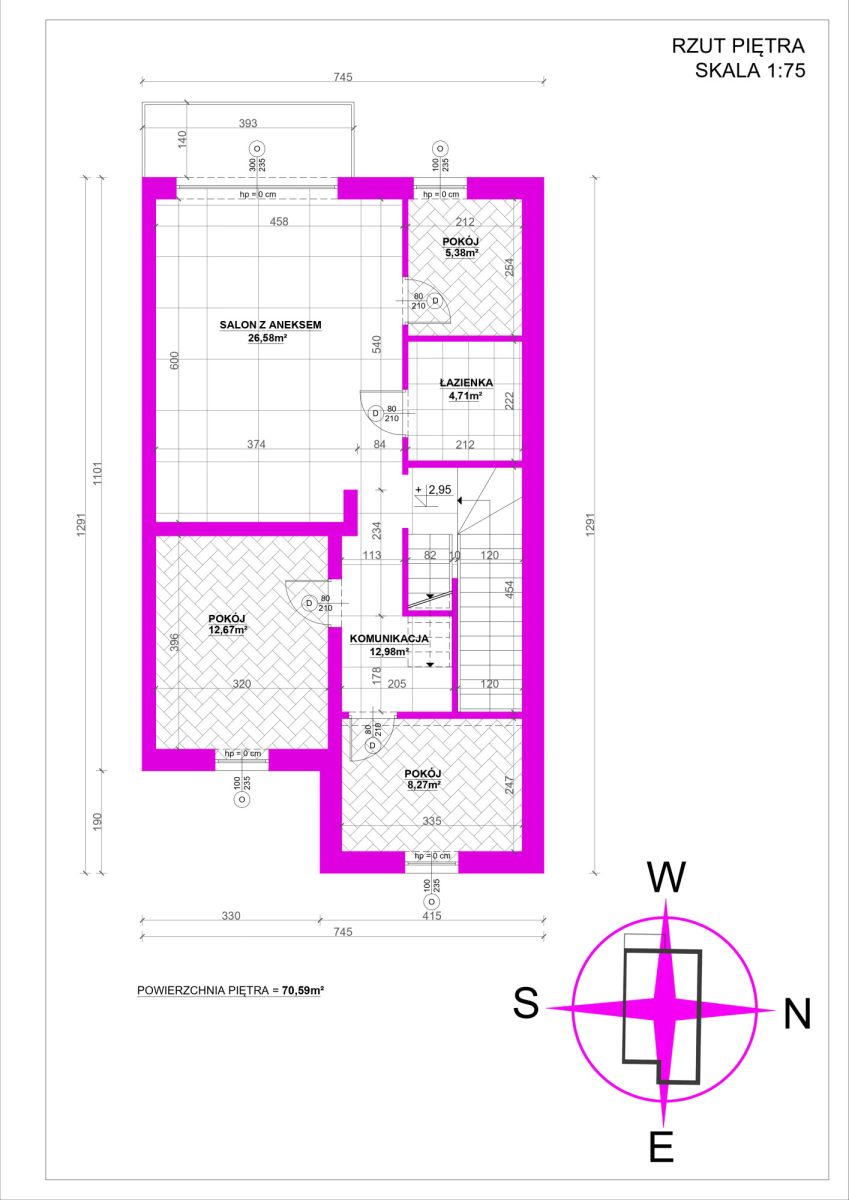 - salon z aneksem kuchennym, (z możliwością przerobienia na inne pomieszczenie np. pralnię z suszarnią)