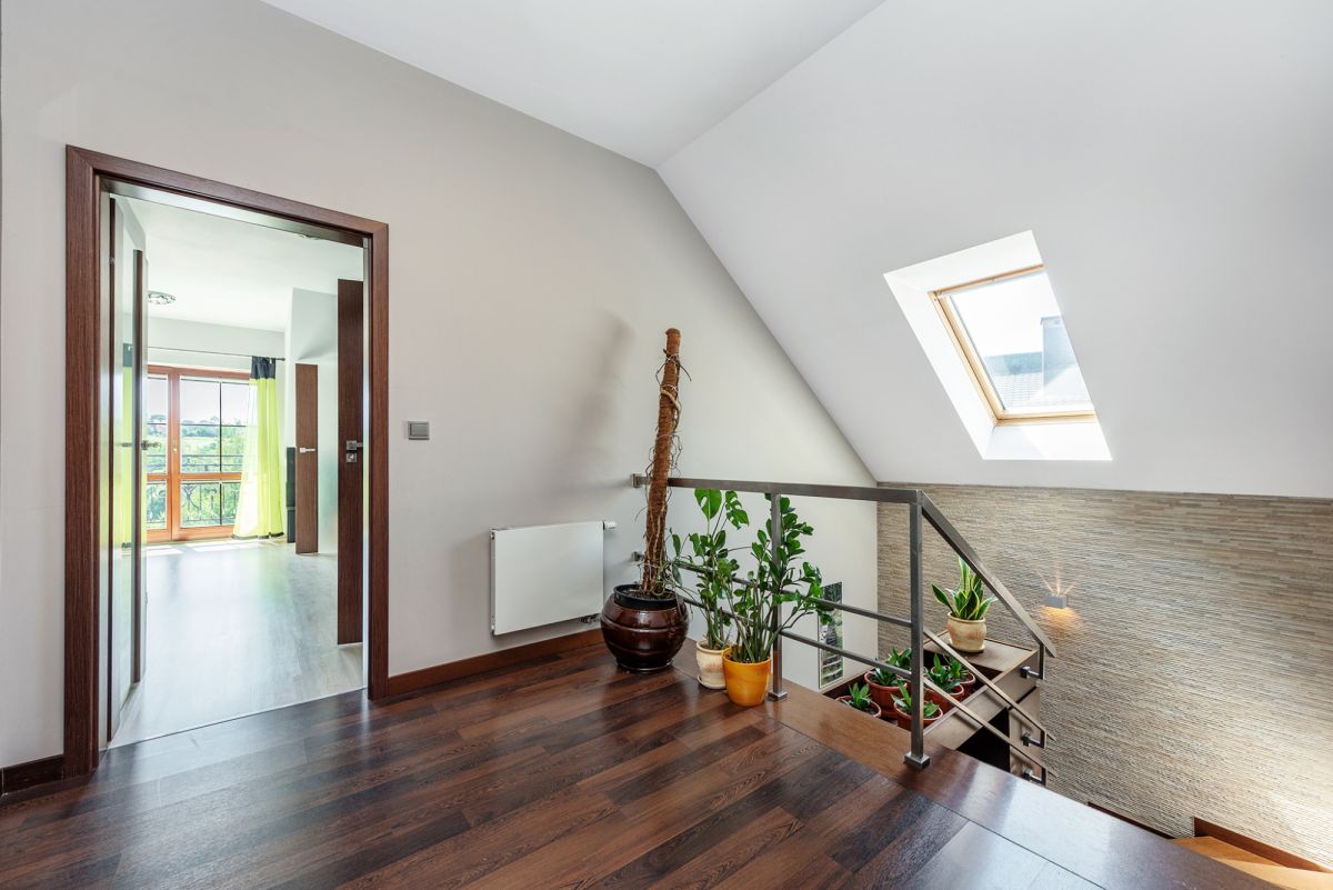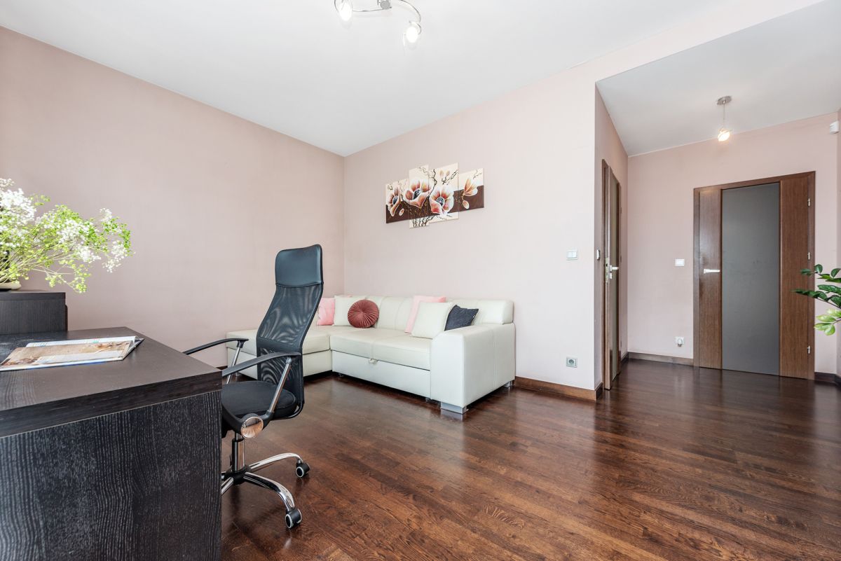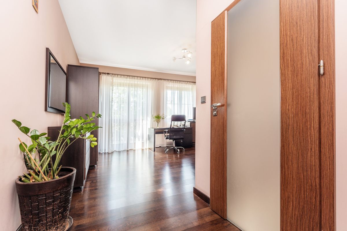 - piętro: główna sypialnia z łazienką oraz garderobą i balkonem, gabinet, dwie sypialnie oraz łazienka