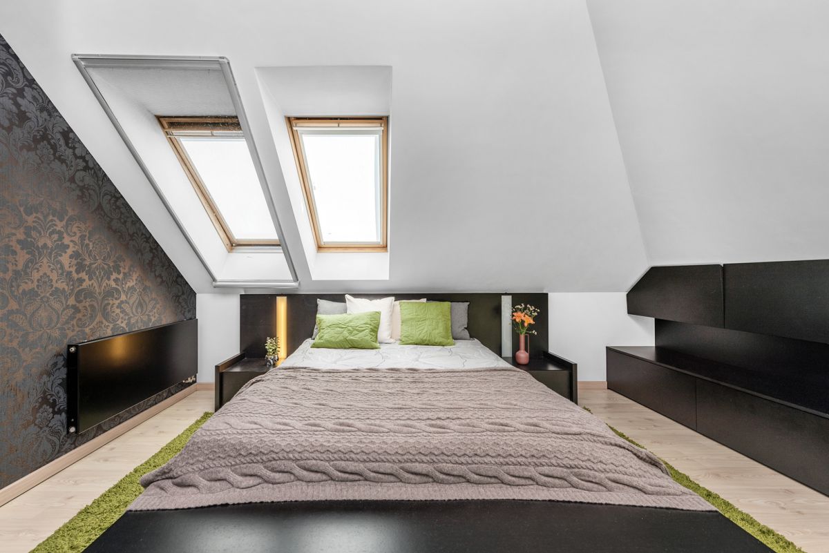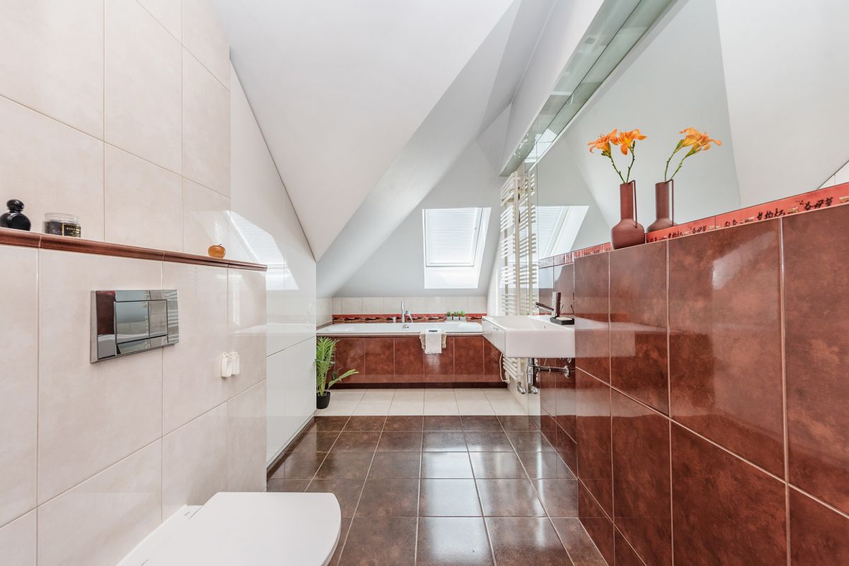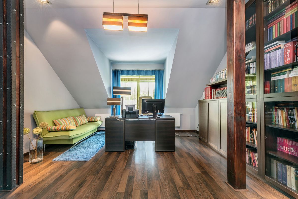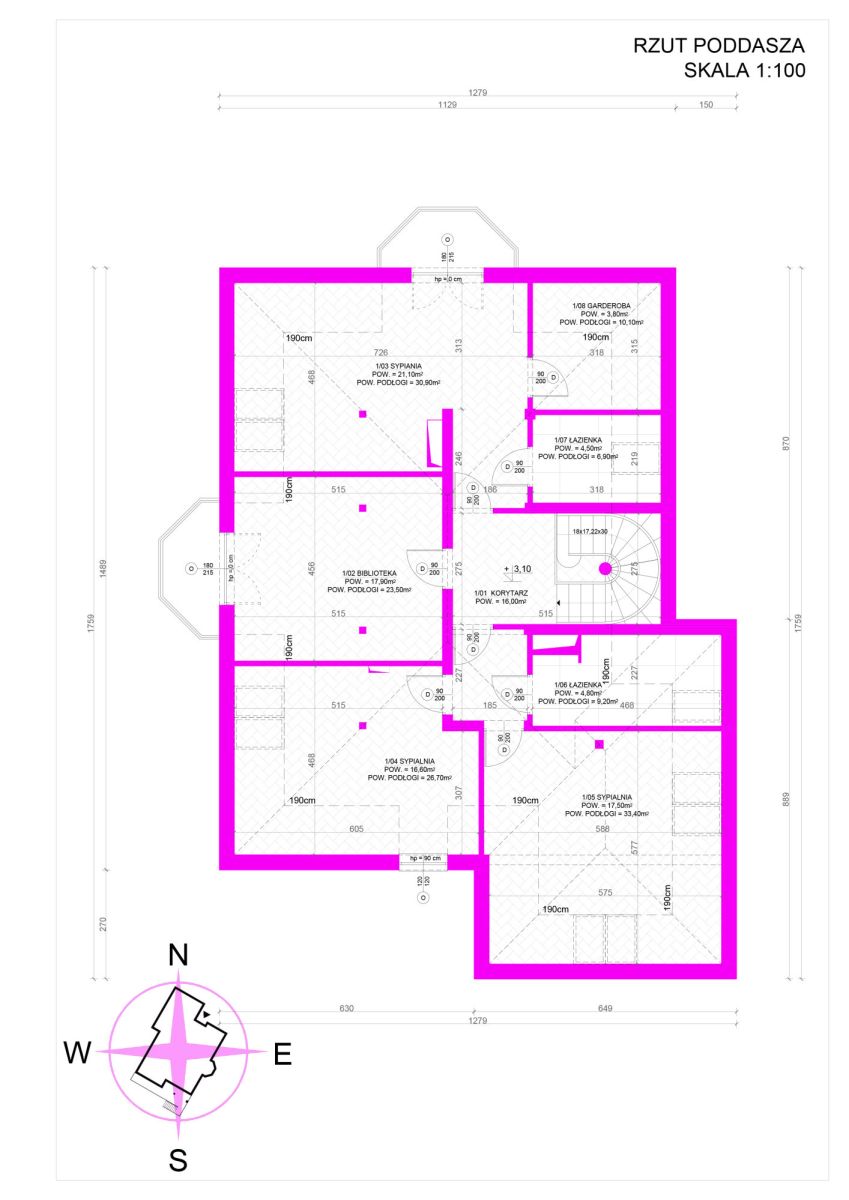 - piętro: główna sypialnia z łazienką oraz garderobą i balkonem, gabinet, dwie sypialnie oraz łazienka