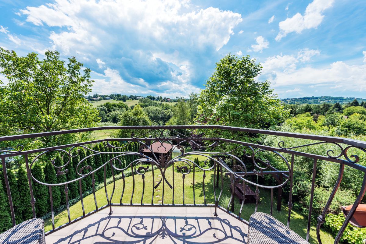 Dom usytuowany jest na działce o powierzchni około 1300 mkw, która kształtem przypomina trapez z ekspozycją południową. Działka jest nasłoneczniona / jasna niemal o każdej porze dnia. Położenie nieruchomości zapewnia piękny widok na pobliskie pogórze, zupełną ciszę i prywatność, którymi można upajać się spędzając czas na dużym tarasie lub przebywając w jednej z altan ogrodowych. W pogodne wieczory można urządzić ognisko korzystając z paleniska, a miłośnicy ogrodnictwa znajdą swój kącik w części uprawnej lub szklarni. Ogród jest zagospodarowany zielenią w taki sposób, aby jego pielęgnacja była prosta i wygodna. Dodatkowo został wyposażony w automatyczną instalację nawadniającą.