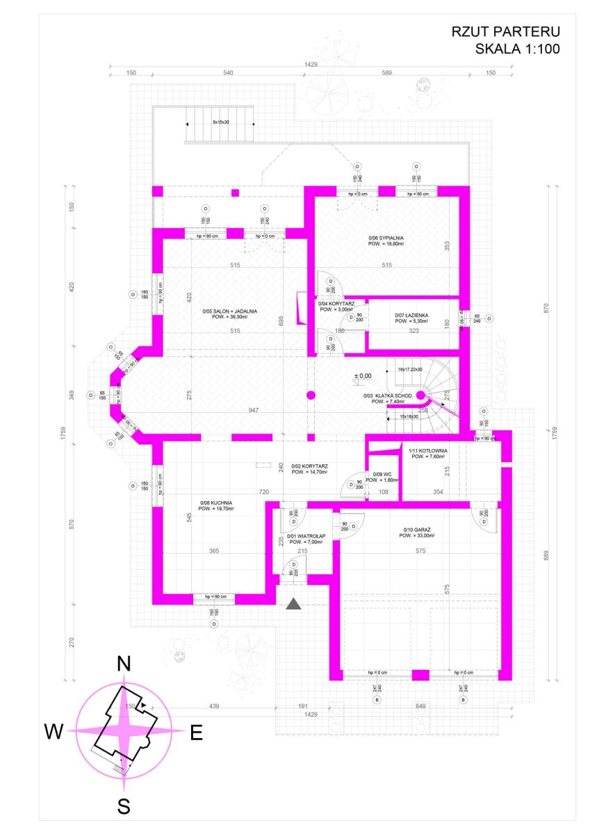 - piwnica: siłownia / pokój gier, spiżarnia oraz kolejne pomieszczenie gospodarcze.